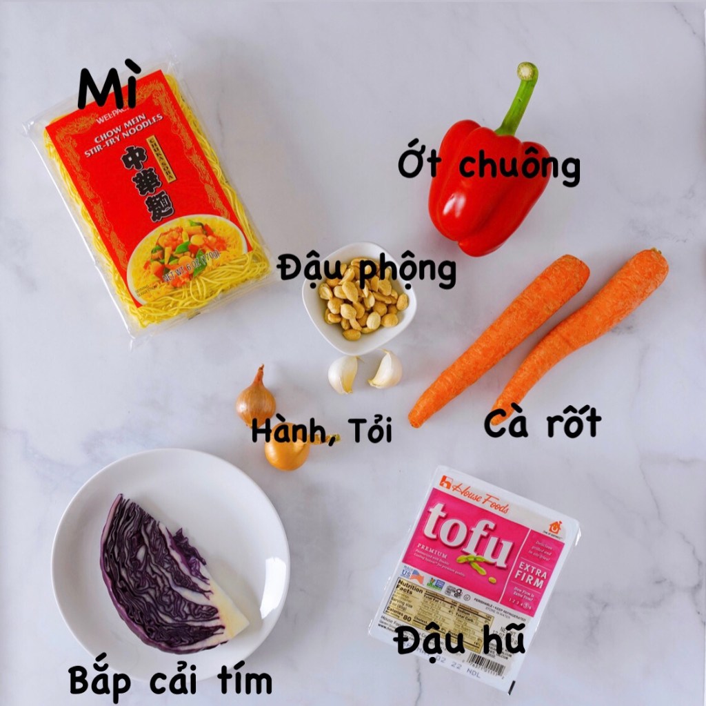 - Cho mì đã nấu chín và đậu hũ chiên vào, và trộn đều.